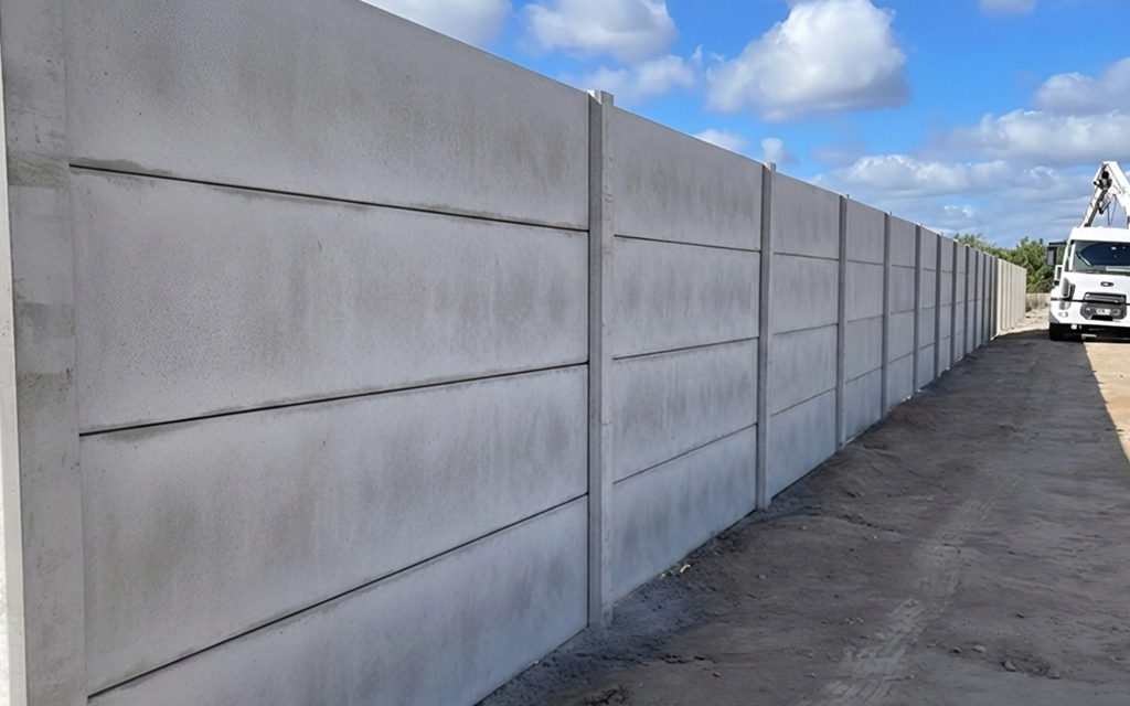 - Muros premoldeados de hormigón: La opción ideal para quienes buscan máxima privacidad y seguridad. Son una solución eficaz para personas que quieran delimitar y proteger predios tanto industriales como residenciales.